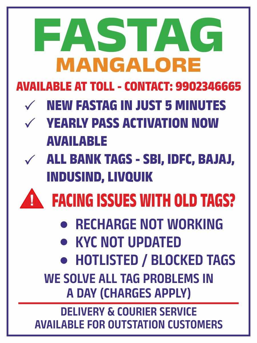 Fastag Mangalore is a service for toll related Seling SBI,IDFC, BAJAJ, INDUSIND, KOTAK HOTLISTED RELATED ISSUE CAN CLEAR