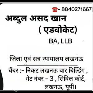 Abdul Asad Khan (Advocate) High Court Lucknow bench Chamber: Gate no.3, Lucknow bar building, Civil Court, Lucknow Uttar Pradesh.