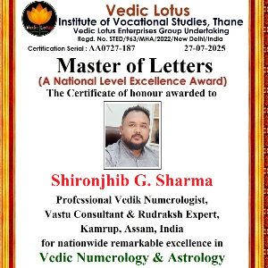 Shironjhib G Sharma is a renowned Vaidik Numerologist, Vastu Consultant, and Rudraksha Expert, celebrated for offering authentic, scripture-based remedies that bring clarity, peace, and lasting transformation. Rooted in the wisdom of the Vedas, his guidan